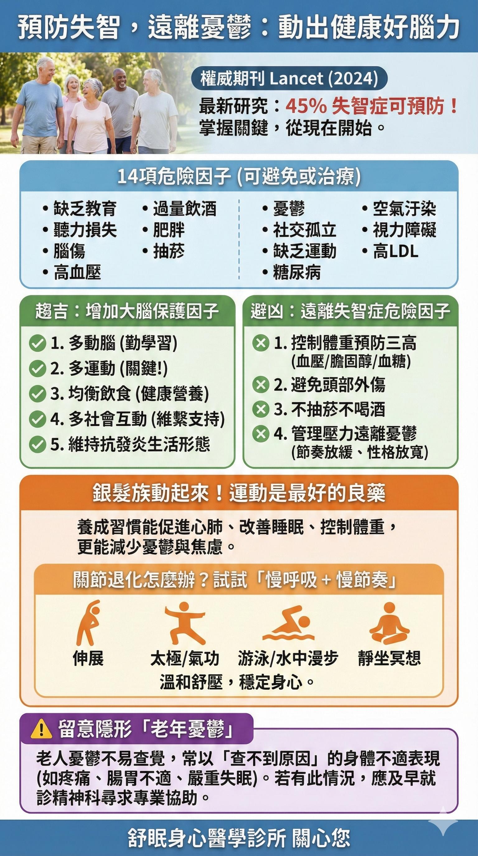 二、《Lancet》最新警告:缺乏運動與憂鬱是失智元兇